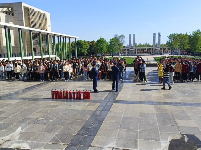 活動(dòng)開始,學(xué)院模擬了火警報(bào)警信號(hào)。警報(bào)響起后,4號(hào)教學(xué)樓的全體師生根據(jù)指示快速有序地疏散到教學(xué)樓外開闊的地方,消防志愿者們維持著現(xiàn)場(chǎng)秩序。隨后單指導(dǎo)員為我院師生講解關(guān)于火災(zāi)預(yù)防、滅火技巧、災(zāi)害應(yīng)對(duì)等方面的知識(shí),并演示、講解了滅火器的使用方法,現(xiàn)場(chǎng)師生指導(dǎo)員們的指揮下使用滅火器進(jìn)行滅火訓(xùn)練,提高了實(shí)踐操作能力。