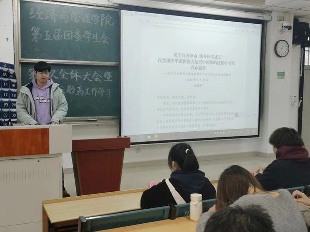 為了進一步端正學生會成員的作風態度,3月14日,經濟與管理學院第五屆團委學生會在一期2-107教室召開了第二次作風警示大會,第五屆團委學生會全體成員參加會議。