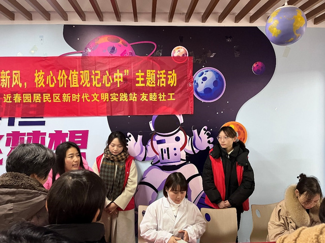 在社區工作人員的組織與安排下,志愿者們以飽滿的熱情參加活動。首先,志愿者來到留守老人家中進行慰問,給老人送去了親切的關懷和問候。之后,志愿者們來到社區文明實踐站,搬來桌椅板凳,搭建志愿服務臺。很快社區居民陸續趕來,志愿服務熱鬧地開展起來:來自醫院的義工為居民們測量血糖血壓,開展醫療知識宣講來自法院的義工為居民們普及法律知識,回答居民有關法律的問題。