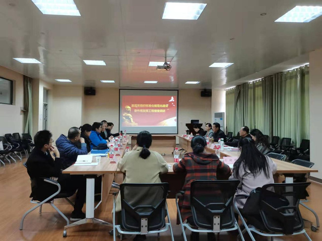 會中,調研組抽查我院標準化規范化建設材料。調研組組長鄭永紅與學院黨委書記、各支部書記座談交流。各支部書記從黨建工作的工作量,黨建材料的整理以及材料標準化等方面提出問題,并進行討論。院黨委副書記魏安樂指出,教職工支部在做好政治工作的同時,要兼顧科研及教學任務,但黨務工作者在學校層面的績效分配評級考核沒有太大優勢,建議能夠減緩黨務工作者的教學工作量。院黨委書記童玉松對黨建工作提出三點建議:一是組織支部書記外出參觀學習;二是提高各支部書記的思想站位;三是黨員發展規模不能完全指標化。