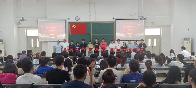 莊嚴的國歌聲拉開了本次大會的序幕,魏安樂代表學院黨委宣讀新發展黨員名單,預備黨員們一同面對鮮紅的黨旗,右手舉拳,神情肅穆,聲音洪亮,莊嚴宣誓,同志們以擲地有聲的錚錚誓言,表達了一名共產黨員崇高的理想信念和價值追求。張文龍代表全體新黨員發言表示,全體新黨員同志必將終生銘記入黨誓詞,身體力行,在實踐中加強自身黨性修養,在工作中增強自身才干,自立、自強、自省,精勤求學,刻苦鉆研,忠誠于黨,服務人民,不負黨和時代賦予的崇高使命。