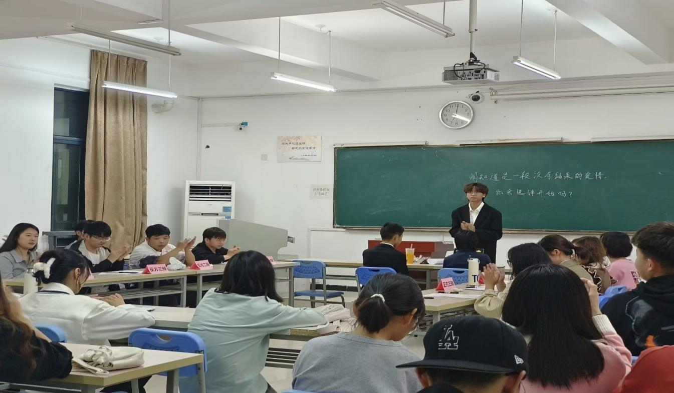 雙方就明知道是一段沒有結果的愛情,你會選擇開始嗎?這一辯題開始辯論。比賽開始,雙方互相問好。正方臺詞式的自我介紹給我們留下了深刻的印象。緊接著正方一辯做立論陳詞,正方觀點為選擇開始這段感情,他的陳述簡潔且堅定己方觀點。緊接著,反方發表他們的立論陳詞。一瞬間雙方摩擦出了濃濃的火藥味,來到第二回合進行一對一攻辯,正方選手舉出泰坦尼克號的例子,在資產階級的壓迫下,他們肯定沒有好的結果,但是他們還是開始了他們的愛情。并且愛情最后還拯救了rose,讓她活成了真正的自己。反方選手也不甘示弱。反駁道,這個愛情到最后rose到底是幸福多還是痛苦多呢?幾個回合下來,雙方打的有來有回,比賽現場更是令人激動。觀眾們不自覺地發出陣陣掌聲。在最后的嘉賓提問環節里,無論是評委提出的問題還是現場觀眾提出的問題,我們的選手總能給出滿意的答案。在評委們的仔細斟酌下,反方獲得本場比賽的勝利,晉級決賽,最佳辯手為反方二辯。