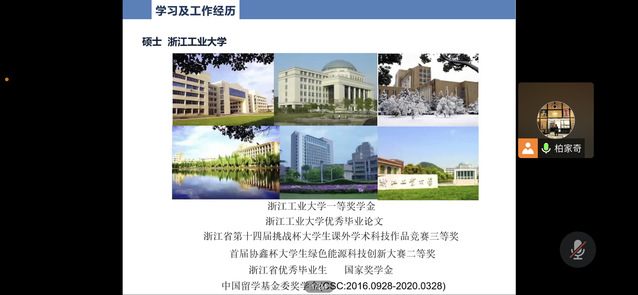 柏家奇老師首先簡單介紹了自己,隨后從自己的學習和工作經驗入手。介紹自己在學習生涯中獲得的各類學術、社會獎項,由此建議同學們充分利用大學時間,在課堂內認真學習專業知識,在第二課堂中注重提升綜合素質。點出大學生應該保持自己的熱愛和與自己“和解”的看法,并與同學們分享了求學路上的趣事和在留學時的風景。柏老師表示:“細節決定成敗,態度決定高度。”“因為愛著,所以執著?!彼麖娬{學生應不斷深化自我認知,將自身實際情況與社會需求相結合,明確“目標”“路徑”和“手段”這三個要素,提高綜合競爭能力,以應對未來的不確定性。隨后向同學們展示了自己的科研成果并進行了簡單闡述。其次向同學了介紹了自己正在研究的科研項目。最后柏老師針對同學們提出的相關問題做出了詳細解答,得出應提高自己的核心競爭力、綜合能力和做好準備和規劃的結論。