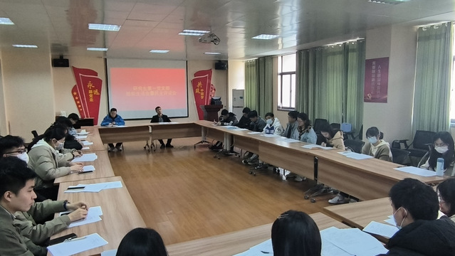 2023年3月3日中午,合肥學院材化學院研究生第一黨支部在生化樓3樓學術中心召開了2022年度組織生活會暨了民主評議黨員會議,會議由支部書記梁升主持,副院長魯紅典到會指導。
