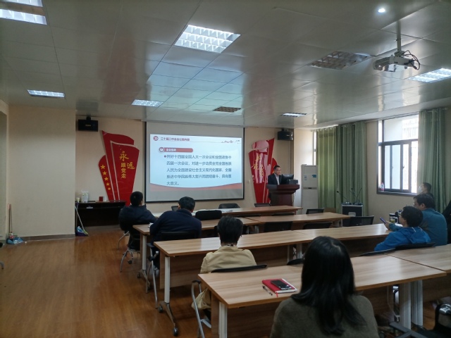3月7日下午,材化學院黨委中心組組織專題學習黨的二十屆二中全會精神學習研討會,會議由學院黨委書記劉沛平主持,學院領導班子、支部書記和部分教工黨員參加了本次會議。