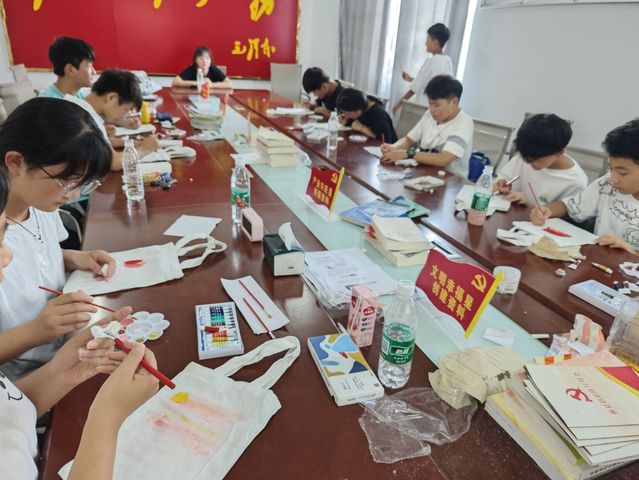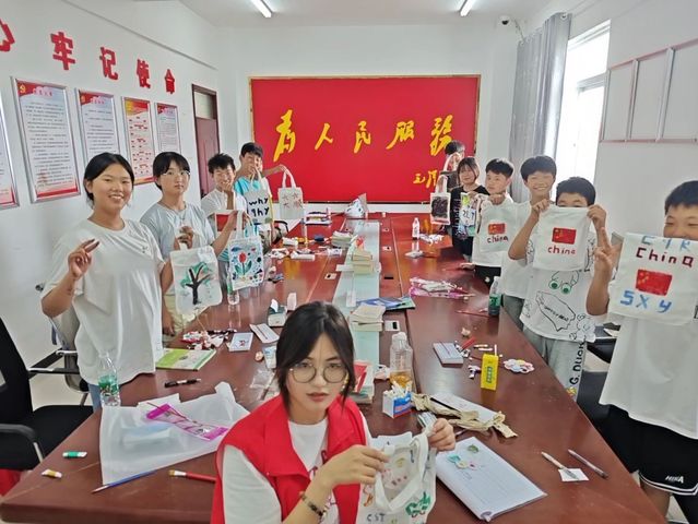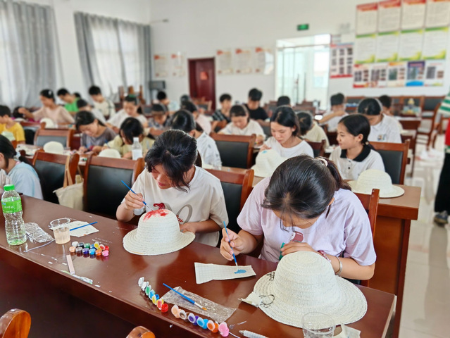 課堂上,孩子們興奮地揮舞著手中的畫筆,一頂頂草帽、帆布袋在他們的巧手下逐漸變得絢麗多彩。每一個孩子都專注地投入到自己的創作中,臉上洋溢著滿足的笑容。團隊成員們也在旁耐心指導,鼓勵孩子們大膽發揮想象力。整個教室充滿了歡聲笑語,儼然成了一片充滿藝術氛圍的天地。