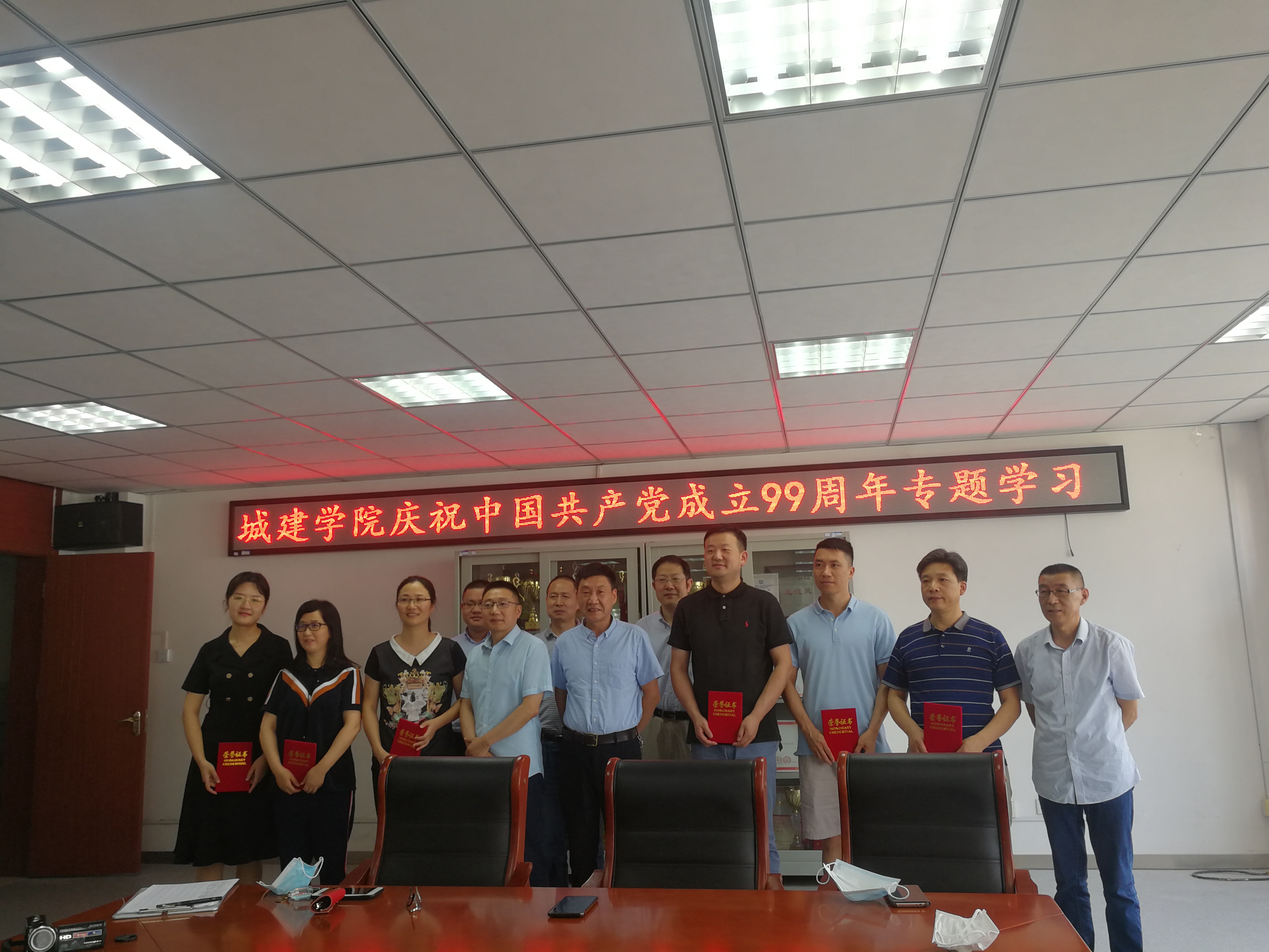 接著,會議還進行了“七一”表彰大會,胡曉軍書記首先宣讀了擬推薦校級“優秀共產黨員”、“優秀黨務工作者”和“先進黨組織”的表彰對象名單。隨后,學院黨委黨員為楊睿等9名獲得院級“優秀共產黨員”和“優秀黨務工作者”的老師頒發榮譽證書。最后,胡曉軍向受到表彰的先進個人表示熱烈的祝賀并致以崇高的敬意,號召全體教職員工以先進集體和先進個人為榜樣,刻苦學習,努力工作。他同時對全體黨員提出要求:一是繼續加強理論學習,堅定理想信念;二是加強基層黨組織建設,做到“七個有力”;三是繼續錘煉黨性修養,嚴守紀律規矩;四是勇于發揮先鋒作用,服務好學院師生。獲獎教師紛紛表示要珍惜榮譽、再接再厲,要以習近平新時代中國特色社會主義思想為指導,為教育事業奉獻青春才華,以優異成績迎接建黨100周年。(城市建設與交通學院)