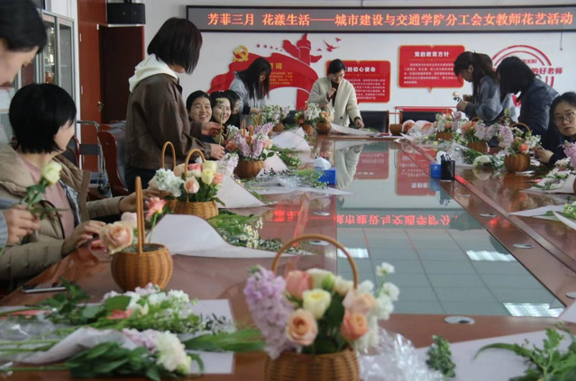三月春風,百花盛開。為慶祝國際三八婦女節,豐富業余生活,城市建設與交通與交通學院于41305會議室舉辦“芳菲三月,花漾生活”花藝活動,學院全體女教師參加。