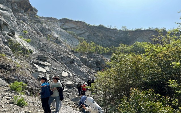 隨后,師生們來到了平頂山采石場附近,近距離參觀了平頂山斷層和金釘子剖面。在實地考察中,同學們認真觀察,積極提問,與帶隊老師進行了熱烈的討論。通過實地考察,同學們對巢湖地區的地質構造有了更為直觀的認識,為今后的專業學習和工作積累了寶貴的實踐經驗。