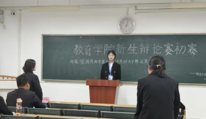 10月18日晚18時30分,教育學院新生辯論賽初賽在一期3棟303教室拉開序幕。本次辯論賽圍繞“強調情緒價值對親密關系利大于弊還是弊大于利”這一主題展開。擔任本場比賽的評委為教育學院楊濡婕、人工智能與大數據學院田夕語和人工智能與大數據學院曹志一。
