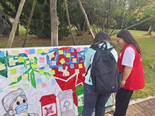世界精神衛生日是每年10月10日,精神衛生是指一種健康狀態,在這種狀態中,每個人都能夠認識到自身潛力,能夠適應正常的生活壓力,有效地工作,為其居住的社區做出貢獻。本次活動主要分為制作心情顏色畫板、心理趣味小知識便條、心情盲盒、撕掉心情標簽、心情分享和給未來自己的一封信六個部分。活動初期,志愿者主要開展制作心情畫板和分發心理小知識便條兩個活動,用綠色、黃色、紅色和藍色分別代表開心、無聊、生氣和憂郁的心情,讓同學們按照當天的心情選擇畫筆的顏色隨意畫在畫板上完成畫作《我的心情日志》,并準備心理趣味小知識便條,讓更多同學了解心理知識。活動的第二天,志愿者們積極鼓勵同學同學們在便簽上寫下自己的煩心事,貼在展板上,隨后在心情盲盒中抽取一張帶有鼓勵或正能量的話語便簽投入盲盒中,讓溫暖傳遞。活動后期,志愿者與同學們一起談心,聊聊自己遇到的難題,幫助同學們一起解決問題。在活動的最后,同學們起筆寫下給未來自己的一封信。