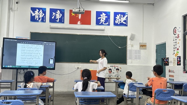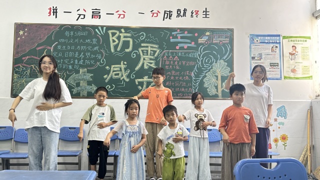 為深入學(xué)習(xí)貫徹黨的二十大精神,培育青年學(xué)生深厚的家國(guó)情懷,深深扎根人民,始終服務(wù)人民。7月5日下午,合肥大學(xué)教育學(xué)院“同筑鄉(xiāng)村夢(mèng),共‘育’振興果”志愿服務(wù)隊(duì)于合肥市小廟鎮(zhèn)蜀山行知學(xué)校開展了暑期“三下鄉(xiāng)”社會(huì)實(shí)踐活動(dòng),老師魯?shù)つ莺凸G寧為同學(xué)們帶來了“手語唱紅歌,無聲寄華夏”主題課程。 課程伊始,老師向同學(xué)們提問關(guān)于手語的知識(shí),激發(fā)同學(xué)們的興趣,并簡(jiǎn)單地介紹了手語的概念、在實(shí)際生活中的運(yùn)用及歷史文化背景。隨后,老師向同學(xué)們展示基礎(chǔ)手語表達(dá)方式的圖片并播放視頻《國(guó)家》,讓同學(xué)們感受歌曲的旋律、節(jié)奏,體會(huì)歌曲的思想內(nèi)涵。接著,學(xué)生跟隨老師的手勢(shì)進(jìn)行模仿和練習(xí),學(xué)習(xí)手語操的基本動(dòng)作和技巧。