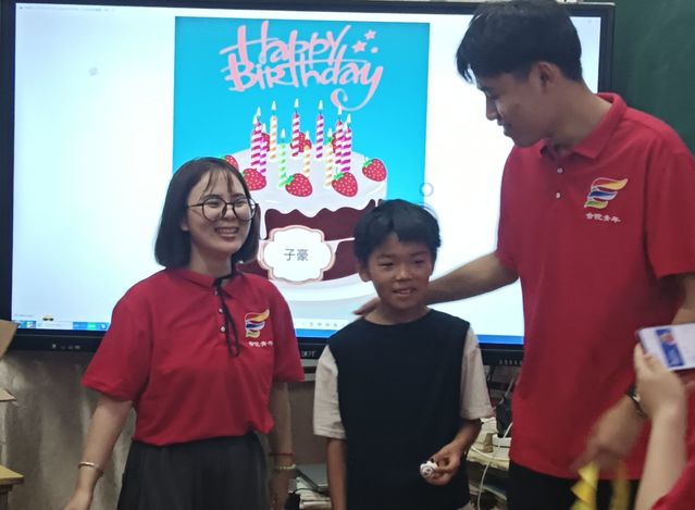 熱情志愿,溫暖關懷 6月23日,教育學院“青春‘育’你行,百年再起航”志愿服務隊在合肥蜀山行知學校開展日常支教工作的同時,還在關懷學生方面做出了努力。 志愿者們了解到這天是五年級二班王子豪同學的12歲生日,由于父母常年在外打工,今年的生日只有他孤身一人無人陪伴,在了解到這個情況后,志愿者們決定給這位同學準備一個小小的生日驚喜。