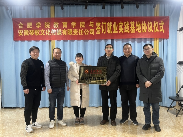 安徽琴歌文化傳媒有限責任公司屠偉校長、王雙辰總經理對教育學院一行的到來表示歡迎。屠偉介紹了公司的業務范圍、發展現狀、員工招聘情況,他表示,校企合作既能發揮學校和企業的各自優勢,又能共同培養社會需求的人才。 劉良宏介紹了合肥學院以及教育學院的辦學特色、專業設置、人才培養和招生就業情況。他希望雙方在師范生藝術素養培養、畢業生就業實習等方面進行全方位合作,積極為畢業生創造更大的成長和發展空間。他表示,學院育人始終緊跟企業和行業用人需求,希望以本次建立就業實踐基地為契機,與安徽琴歌文化傳媒有限責任公司建立良好合作關系,助力畢業生高質量就業。