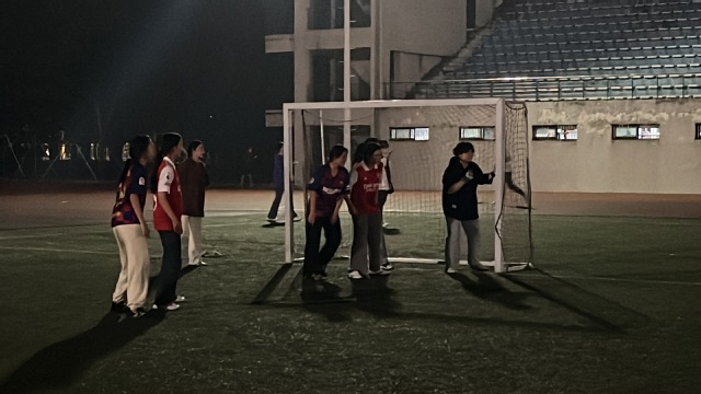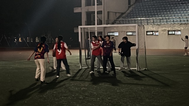 伴隨著主裁判的一聲哨響,緊張的比賽拉開了序幕。雙方球員嚴陣以待,蓄勢待發。上半場開場,狹路相逢勇者勝,團隊之間默契傳球,時進時退、時急時緩。教育學院11號球員梅怡賢突破防守首進一球,為教育學院奪下開場分,把比賽推向了高潮。之后雙方毫不相讓,不斷地進攻、防守,你來我往,精彩紛呈。我方9號后衛徐暢的多次力挽狂瀾引得觀眾直呼精彩。我方球員默契配合,在上半場即將結束之際再奪一分,以2:0的得分暫時領先設計學院。 經過短暫的休息,比賽來到緊張的下半場,球員們的熱情更盛,觀眾的歡呼聲也更盛。雙方隊員都拼盡全力,你追我趕,隨著時間的流逝,設計學院拿下一分。比賽最后,我院以一分的優勢險勝設計學院,結束了整場比賽。