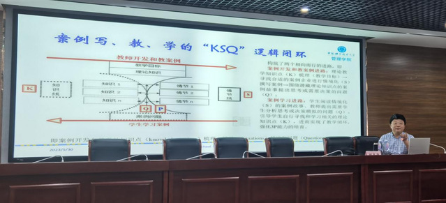 劉志迎教授以教學(xué)案例庫的建設(shè)為主題,運用大量生動的例子從案例的采編、教學(xué)到案例寫、教、學(xué)的KSQ邏輯閉環(huán)內(nèi)容向老師和同學(xué)們進行了分享。劉教授通過深入淺出的講解和舉例,幫助老師明確了案例教學(xué)的目的和優(yōu)勢,并在講座中分享了他所撰寫的案例內(nèi)容,從行文風(fēng)格到教學(xué)作用都予以詳細的介紹。我院的張業(yè)臣老師和葉旸老師還結(jié)合個人教學(xué)心得向劉教授提問,進行了深入的交流,講座在熱烈的氣氛中結(jié)束。參加此次學(xué)術(shù)講座的老師和同學(xué)紛紛表示此次講座干貨滿滿、受益匪淺