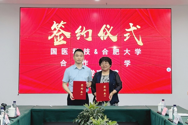 會上,雙方進(jìn)行了“院企黨建聯(lián)建單位”“國醫(yī)啟航班合作辦學(xué)”簽約儀式、“安徽省研究生培養(yǎng)基地”、“黨建聯(lián)建單位”授牌儀式,并對未來的發(fā)展進(jìn)行交流溝通。