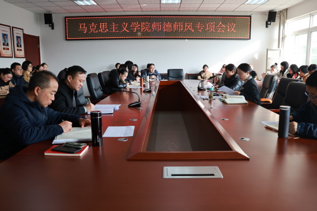 為深入學(xué)習(xí)貫徹習(xí)近平總書(shū)記關(guān)于教師隊(duì)伍建設(shè)的重要論述精神,弘揚(yáng)教育家精神,進(jìn)一步加強(qiáng)師德師風(fēng)建設(shè)。2024年12月18日,馬克思主義學(xué)院召開(kāi)師德師風(fēng)建設(shè)專(zhuān)題會(huì)議,全體教師參加會(huì)議,馬克思主義學(xué)院直屬黨支部書(shū)記蘇冰主持會(huì)議。