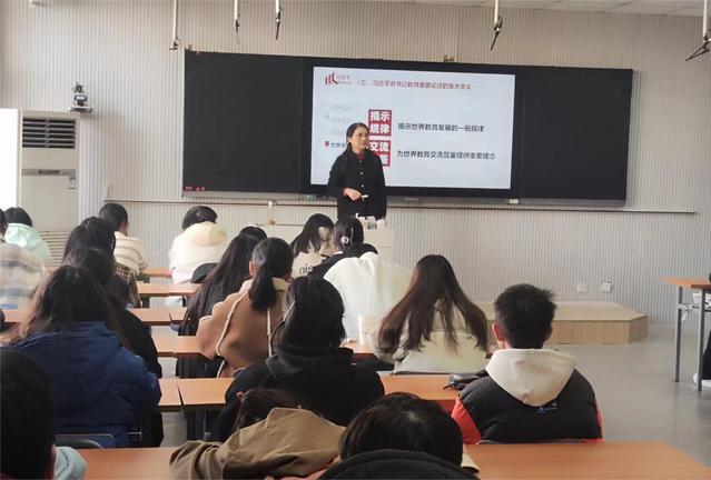 陳秀為大學生上思政課 為切實發揮學校領導在思政課建設中的示范帶頭作用,2023年12月6日,陳秀副院長深入教學一線,在37棟403教室為23級數學與應用數學專業學生講授了一堂有高度、有深度、有情懷、有溫度的思政課。