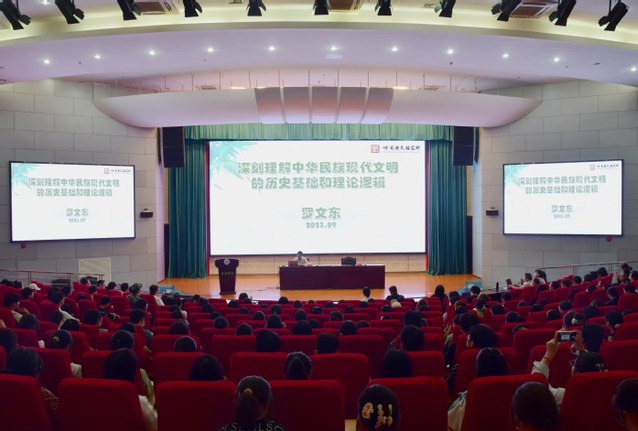 924日下午,由科研處和馬克思主義學院主辦、校科協和社科聯協辦的“深刻理解中華民族現代文明的歷史基礎和理論邏輯”學術報告會在圖書館報告廳A廳舉辦。中國社會科學院世界歷史研究所研究員、中國社會科學院大學博士生導師羅文東教授應邀作學術報告,院長吳春梅出席并主持,馬克思主義學院部分教師和語言文化與傳媒學院本科生、研究生共150余人參會。