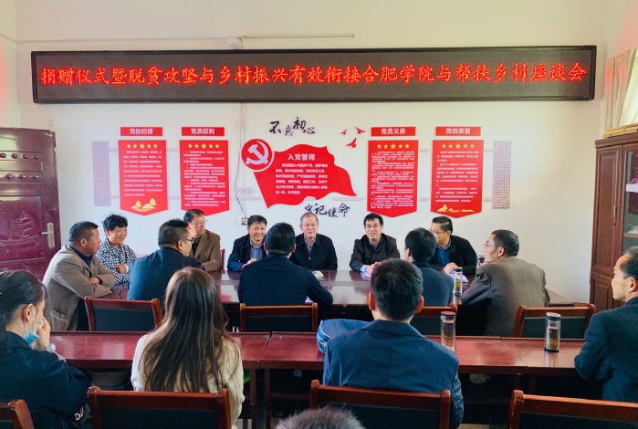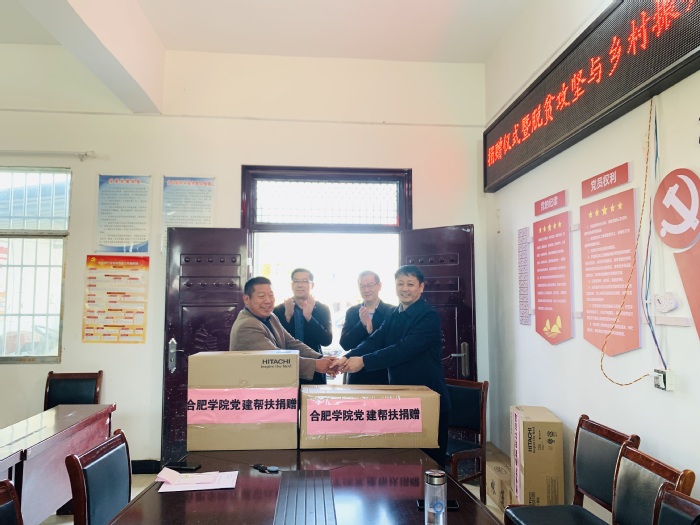 校黨委委員、組織部部長(zhǎng)白義香對(duì)我校定點(diǎn)幫扶工作進(jìn)行了介紹,“在縣和村兩級(jí)幫扶層面,合肥學(xué)院一直走在前列,于2015年就探索并逐漸形成了教職工捐購(gòu)、學(xué)校食堂采購(gòu)和校工會(huì)定向采購(gòu)的消費(fèi)扶貧模式。合肥學(xué)院的黨建結(jié)對(duì)幫扶、產(chǎn)業(yè)扶貧和教育扶貧也都各具特色。此次捐贈(zèng)的兩臺(tái)投影儀,就是為了提升幫扶村黨建工作硬件設(shè)施配置。”隨后,白義香代表學(xué)校與兩個(gè)幫扶村舉行了捐贈(zèng)儀式。