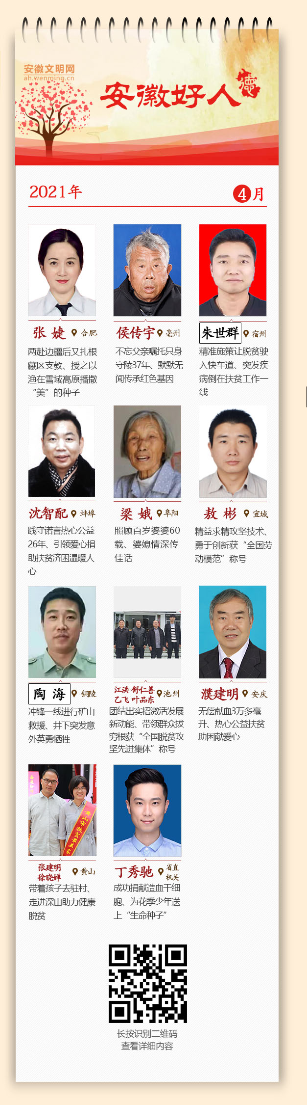 致敬身邊好人,傳遞榜樣力量。日前,安徽省文明辦發布2021年4月“安徽好人”榜,我校教師朱世群獲評“安徽好人”稱號。