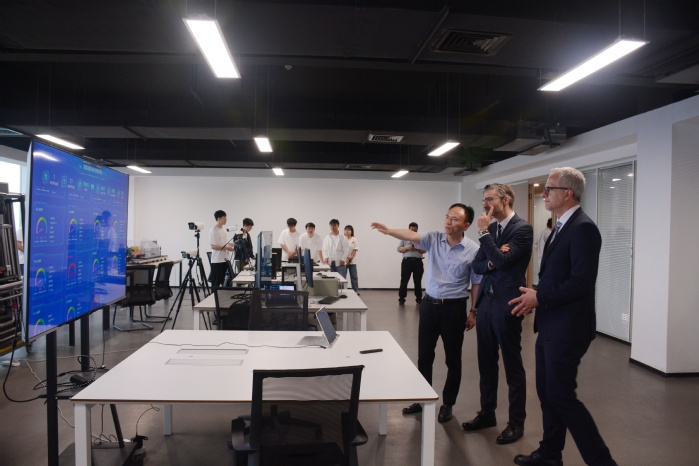 5月26日下午,德國(guó)大眾汽車集團(tuán)管理董事會(huì)成員、人力資源管理負(fù)責(zé)人柯利安Gunnar Kilian率代表團(tuán)來訪我校,深入調(diào)研中德教育合作示范基地,交流大眾學(xué)院的建設(shè)情況。合肥市委副書記路軍陪同訪問并視察大眾學(xué)院建設(shè)進(jìn)展。