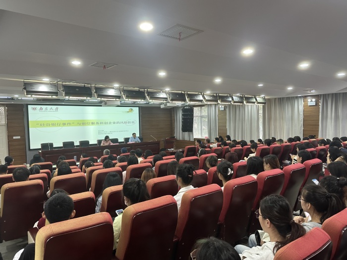 9月21日下午,南京大學范從來教授受邀在一期6棟學術報告廳為我校師生作題為“‘硅谷銀行事件’與銀行服務科創企業的風險防范”的學術報告。院長吳春梅主持報告會。