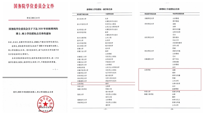 日前,國務(wù)院學(xué)位委員會印發(fā)《關(guān)于下達(dá)2020年審核增列的博士、碩士學(xué)位授權(quán)點(diǎn)名單的通知》(學(xué)位【2021】14號),我校獲批1個數(shù)學(xué)一級碩士點(diǎn)和金融等8個專業(yè)學(xué)位碩士點(diǎn)。目前我校現(xiàn)有碩士一級學(xué)位點(diǎn)2個,專業(yè)學(xué)位11類。