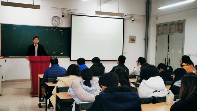 大會(huì)中,殷明明老師首先向大家介紹了畢業(yè)論文撰寫的整個(gè)流程,包括選定指導(dǎo)老師,確定選題,提交開題報(bào)告,復(fù)審,抽查以及答辯等步驟。然后,殷明明老師給大家講解了一些細(xì)節(jié),比如查重比重、送至外審的比例等,要求大家誠信寫作。之后,殷明明老師向大家強(qiáng)調(diào)了畢業(yè)實(shí)習(xí)的要求和紀(jì)律。
