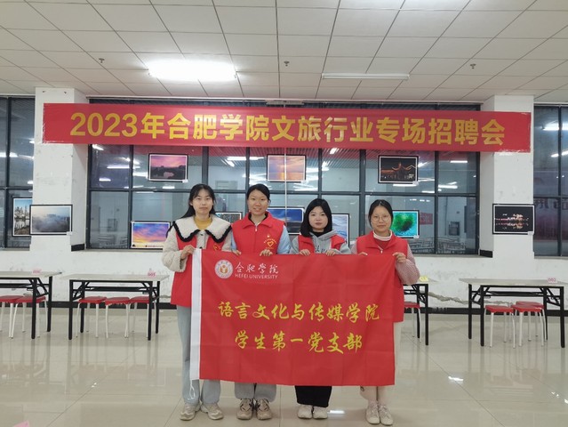 2023316日星期四下午,語言文化與傳媒學院學生第一黨支部的學生黨員們來到了圖書館招聘廳,為2023年合肥學院文旅行業專場招聘會進行志愿服務活動。