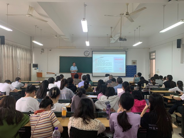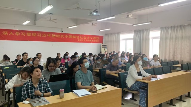 5月16日下午,語言文化與傳媒學院在5棟305教室舉行主題教育專題黨課暨黨的二十大精神宣講會,黨課由學院黨委書記儲昭輝教授講授,全院所有教師及學生黨員參加。