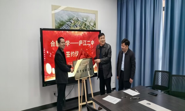 座談后,雙方簽署了《合肥大學(xué)優(yōu)質(zhì)生源基地共建協(xié)議書(shū)》,并共同為“合肥大學(xué)優(yōu)質(zhì)生源基地”揭牌。